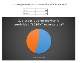 La hipótesis de este trabajo dice que el hecho de que la comunidad LGBT+ no termine de ser aceptada por la sociedad mexicana se debe al machismo tan arraigado que se tiene en nuestra cultura, basados en las entrevistas podemos inferir que, efectivamente, el machismo juega un gran rol en la vida de los mexicanos, y aunque casi el 100% está de acuerdo en que la vida y orientación sexual de los demas no afecta a terceros, y un 100% concuerde en que la orientación sexual no define como buenas o malas personas a la gente aún hace falta que la información correcta llegue a las personas y que éstas estén dispuestas a escucharla y entenderla.